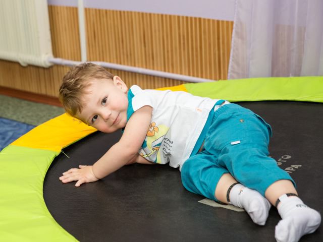 Батут: улюблене заняття, що допомагає тренувати навичку стрибків, орієнтацію у просторі, баланс та вестибулярний апарат. -
